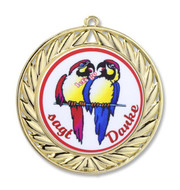 Medaillenschnäppchen in Gold, Silber oder Bronze mit individuellem Motiv / Vereinswappen und Text in Schwarz oder Farbe sowie Kordel in verschiedenen Farbkombinationen.