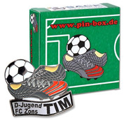 Exklusiv nur bei uns erhältlich: individuell gefertigte Fußballpins (11 Stück) oder Tennispins (6 Stück) für jedes einzelne Mannschaftsmitglied in einer attraktiven Pinbox.