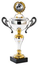 Klassischer Henkelpokal PK-12g (dreidimensionale Darstellung!) mit Beschriftung und Sportmotiv. 30 Gravurzeichen gratis.
