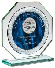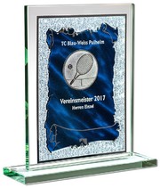 NEU: Trophies aus hochwertigem Kristallglas mit blauer Aluminiumauflage, Sportmotiven Ihrer Wahl, individueller Beschriftung (30 kostenlose Gravurzeichen) und kostenloser Gravur des Vereinsnamens.