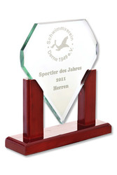 Trophies aus hochwertigem Kristallglas mit Sportmotiven Ihrer Wahl, individueller Beschriftung (30 kostenlose Gravurzeichen) und kostenloser Gravur des Vereinsnamens.