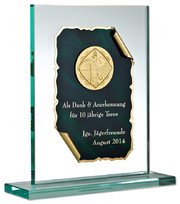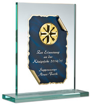 NEU: Trophy aus hochwertigem Kristallglas (10 mm stark mit geschliffenen Kanten) mit Aluminiumauflage, Sportmotiven Ihrer Wahl, individueller Beschriftung (30 kostenlose Gravurzeichen) und kostenloser Gravur des Vereinsnamens.