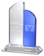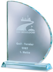 Trophies in Spitzenqualität aus hochwertigem Kristallglas (13-15 mm stark mit Diamantschliff-Rand) mit Ihrem individuellen Vereins- oder Firmenlogo, kostenloser Gravur Ihres Wunschtextes und edler Geschenkverpackung.